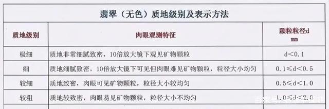 质地级别根据翡翠组成矿物的颗粒划分为五个级别。