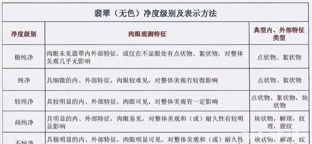 根据内含物对翡翠美观和耐久性的影响程度,将净度分为五个级别。